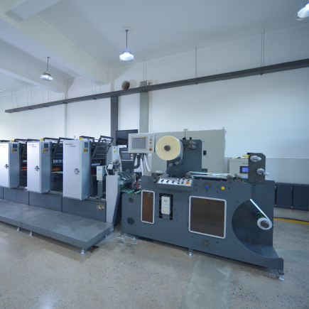 设备优势:集五色印刷、烫金、模切、排废于一体的高端标签印刷生产线。